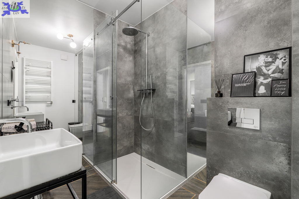 Łazienka Nowoczesna, z wygodną strefą prysznicową.