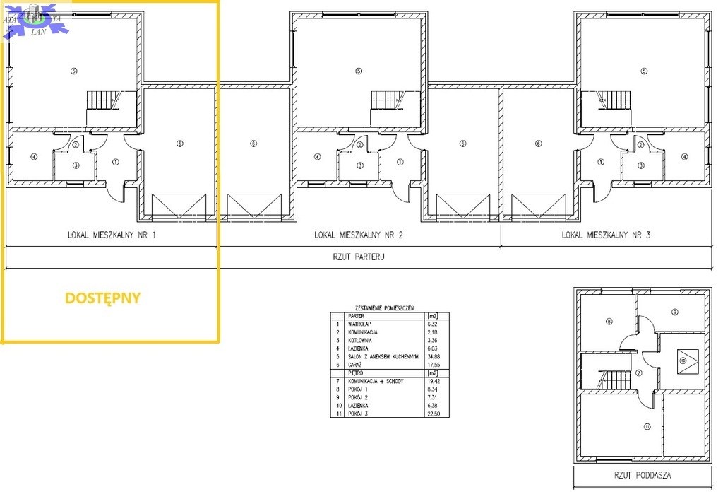 RAZEM 52,76 m2 + garaż 17,55 m2 =70,32 m2