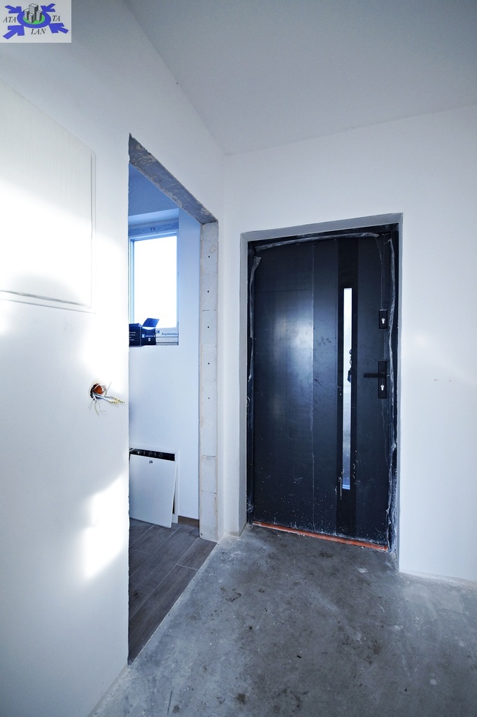 Dom składa się z 4 pokoi, dużego salonu na parterze połączonego z aneksem kuchennym z wyjściem na słoneczny taras, 2 łazienek, 3 sypialni na piętrze oraz pomieszczenia gospodarczego.