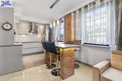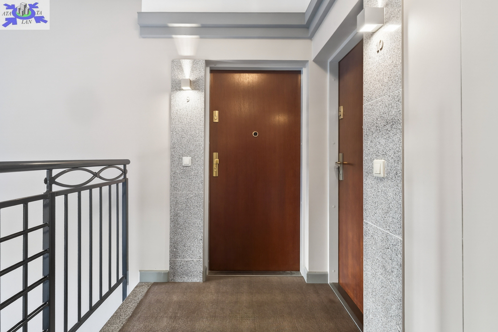 Mieszkanie zostało wykończone w wysokim standardzie z dbałością o każdy detal. W salonie i korytarzu położone zostały płytki gresowe wielkoformatowe wysokiej jakości. W głównej sypialni parkiet bambusowy a w mniejszej egzotyczny parkiet redwood. Parapety granitowe. Ściany w całym lokalu gładzone i malowane. W kabinie prysznicowej zamontowano siedzisko na wzór łaźni. Ponadto należy wspomnieć o dodatkowym systemie alarmowym i videodomofonie, które także wpływają na zwiększone bezpieczeństwo a także roletach antywłamaniowych zamontowanych w pokoju z balkonem. Zastosowano wiele rozwiązań które niewątpliwie docenią osoby o wysokim poczuciu estetyki ponadto oczekujące pełnego komfortu i poczucia bezpieczeństwa.