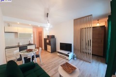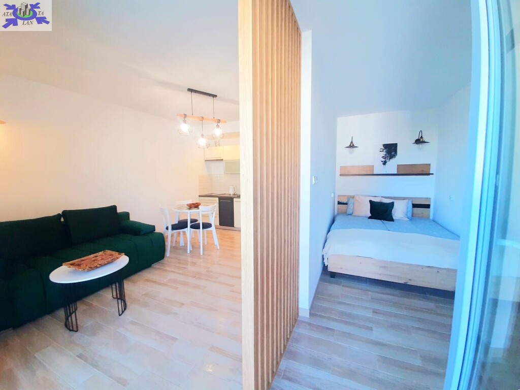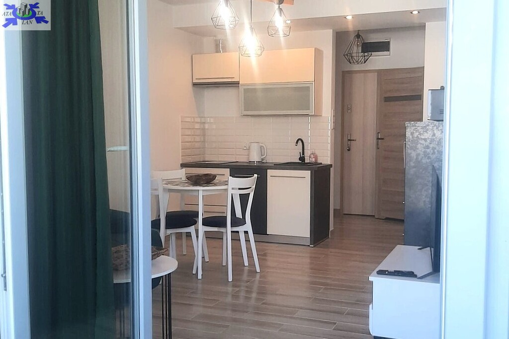 Kawalerka z wydzieloną sypialnią, z balkonem i miejscem postojowym przed budynkiem, w Świnoujściu na zamkniętym osiedlu na ul. Ułańskiej.