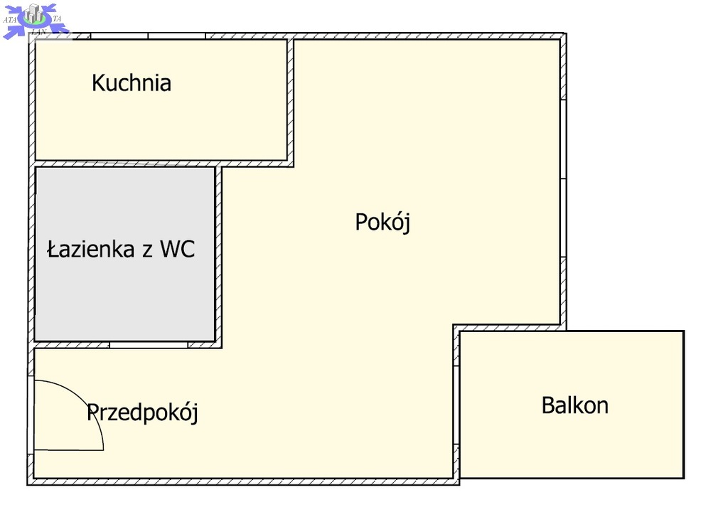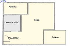 Na mieszkanie składa się pokój z wyjściem na duży balkon typu loggia, oddzielna kuchnia, przedpokój oraz łazienka. Na podłodze w pokoju panele, w pozostałej części mieszkania terakota. Kuchnia w pełni umeblowana i wyposażona w sprzęt AGD - kuchenka gazowa z piekarnikiem, zlew, lodówka.