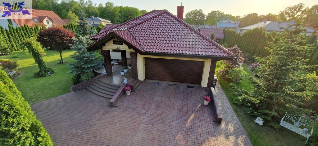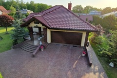 Garaż dwustanowiskowy (33 m2) z bramą automatyczną, utwardzony podjazd z kostki klinkierowej.