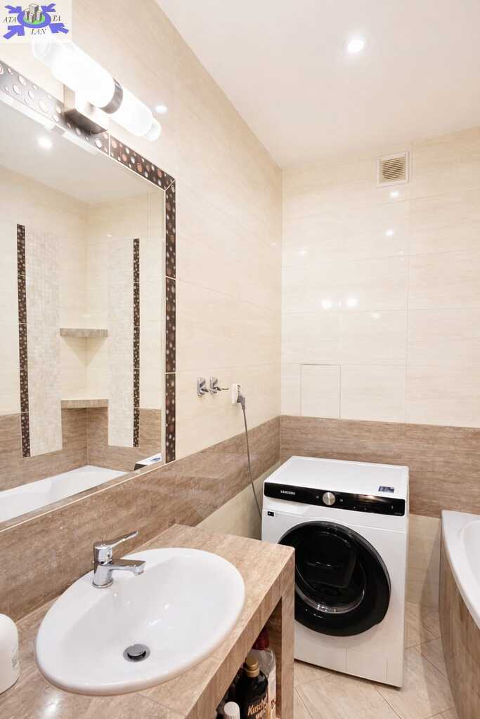 Mieszkanie wyróżnia się przemyślanym układem, dużą ilością miejsca do przechowywania oraz dwoma łazienkami, co znacząco podnosi komfort codziennego życia.