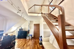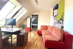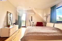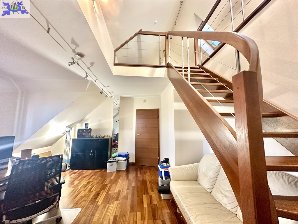 -przestronny pokój z antresolą i małą garderobą,