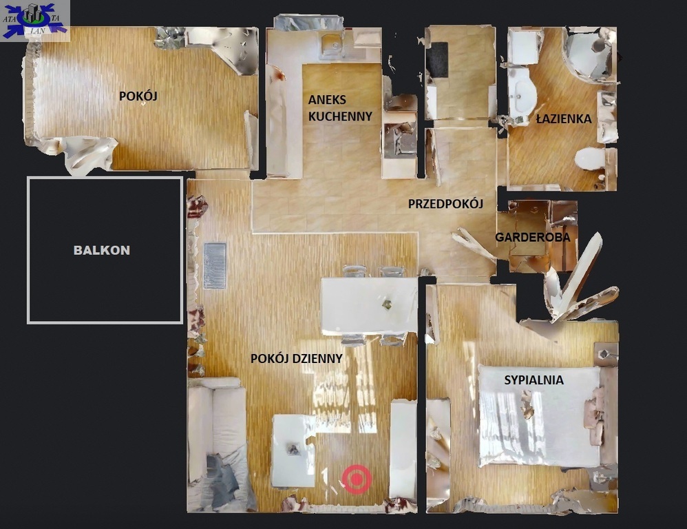 Z salonu wyjście na słoneczny taras ok.7 m2.