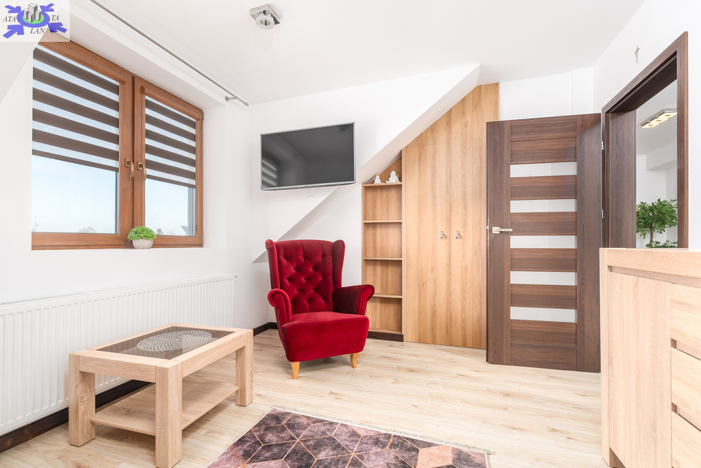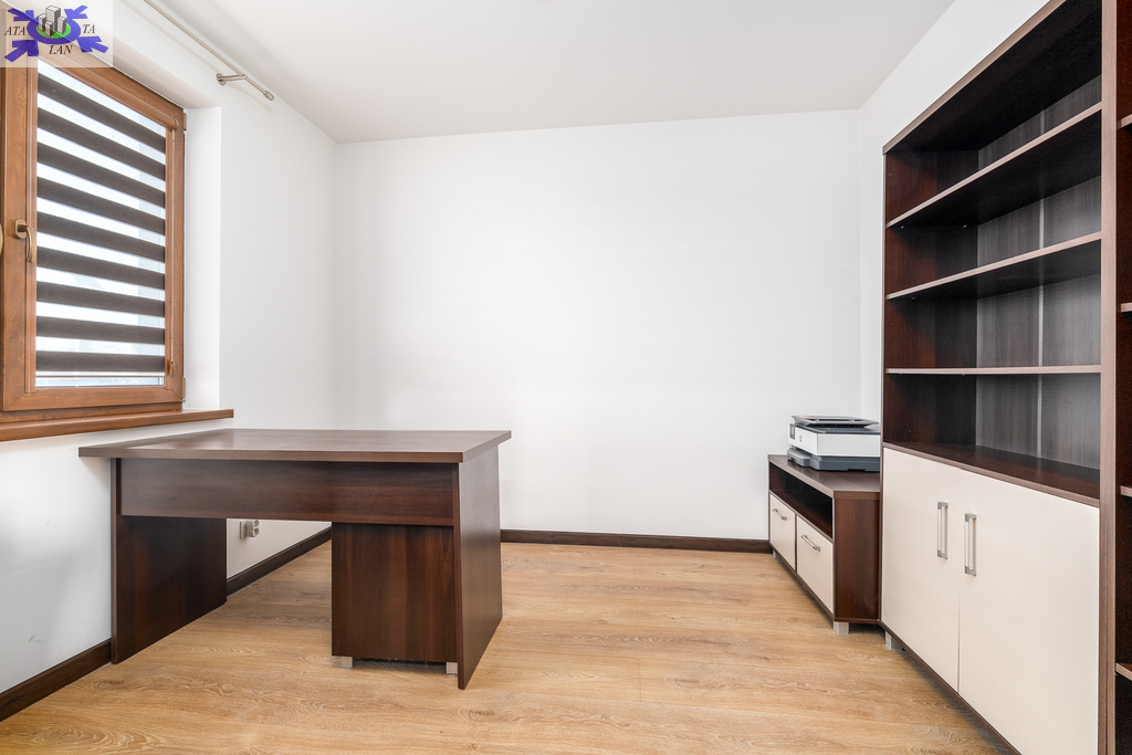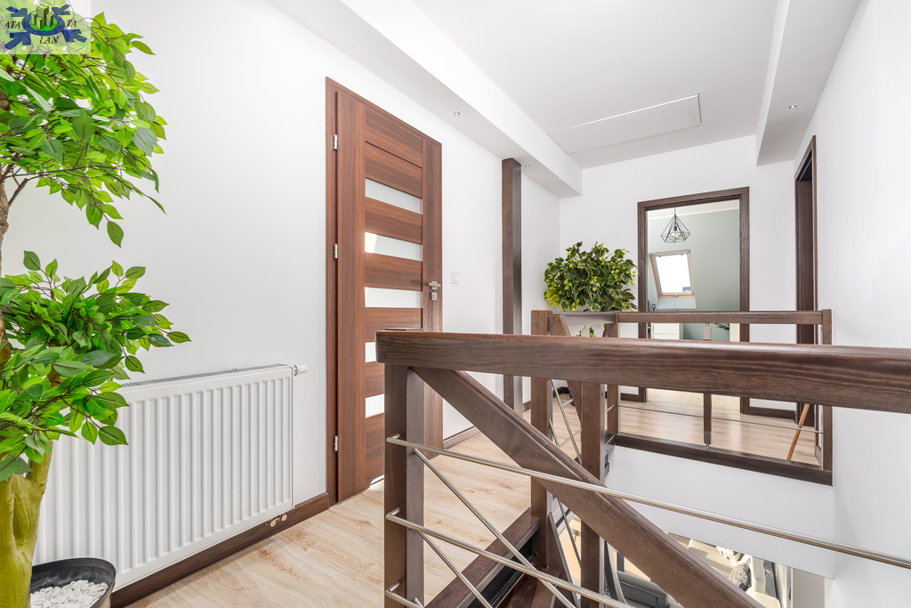 Powierzchnia użytkowa 144,50 m2 (całkowita 214,2 m2). Konstrukcja Solidny pustak ceramiczny SILKA, dachówka ceramiczna, stropy żelbetowe. Izolacja Bardzo wysoki standard termiczny (styropian 16 cm, wełna mineralna 20 cm). Układ Na parterze przestronny salon, kuchnia z jadalnią, dodatkowy gabinet, łazienka z pomieszczeniem gospodarczym i garaż. Na poddaszu trzy komfortowe sypialnie i duża łazienka.Bezpieczeństwo system alarmowy, monitoring i videodomofon.Ogrodzenie Cześć frontowa domu - automatyczna bram wjazdowa, furtka - panelowe ogrodzenie metalowe malowane proszkowo, reszta działki - wzmocniona siatka ogrodzeniowa.Media Budynek podłączony do sieci energetycznej, wodociągowej oraz miejskiej kanalizacji sanitarnej, dostępny także gaz (złącze przy działce).
