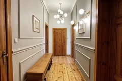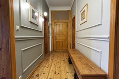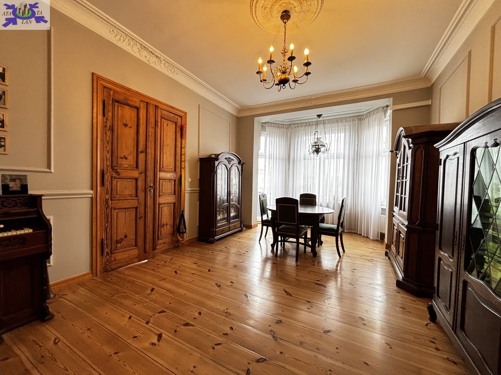 Na podłodze piękna, odrestaurowana deska drewniana. Ściany wygładzone i pomalowane. Na ścianach i suficie piękna sztukateria. W dwóch pokojach zostały zachowane oryginalna kaflowe piece, a także unokatowa lampa naftowa. Została zachowana oryginalna, odnowiona drewniana stolarka drzwiowa. Okna zostały wymienione 3 szybowe PCV.