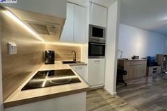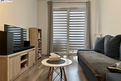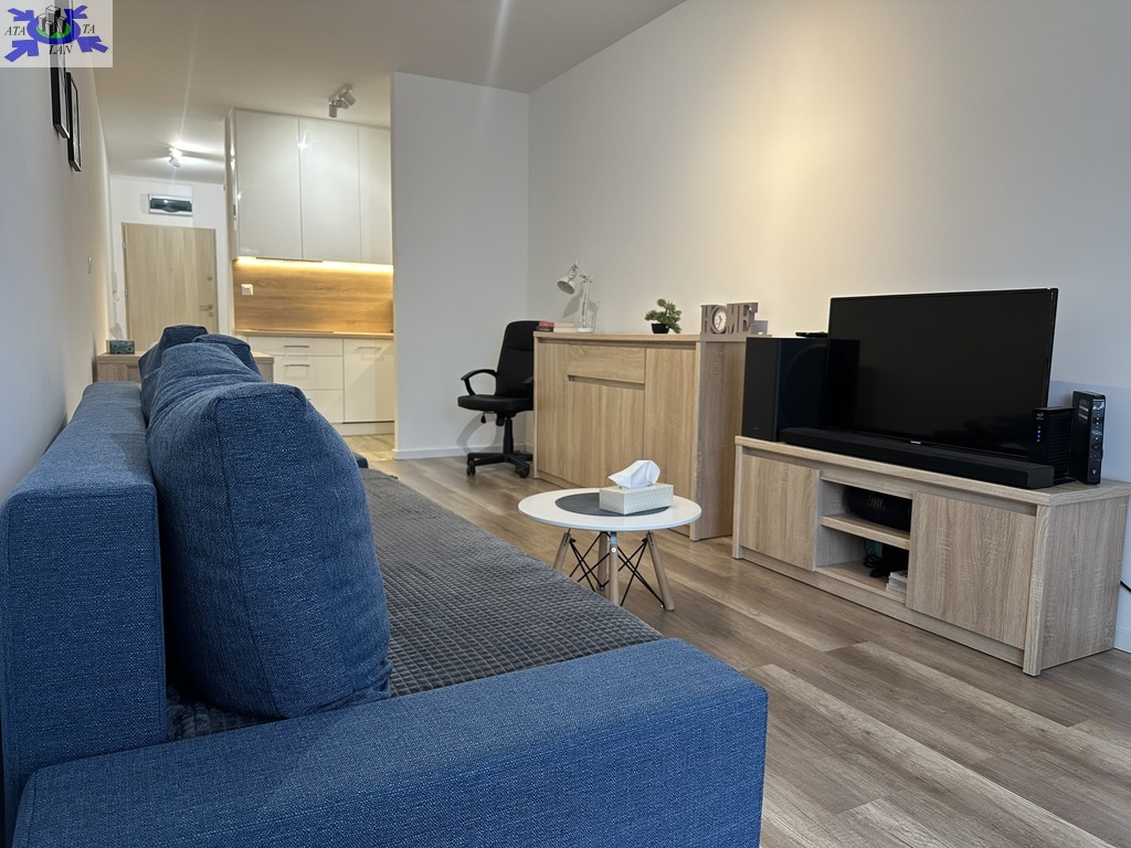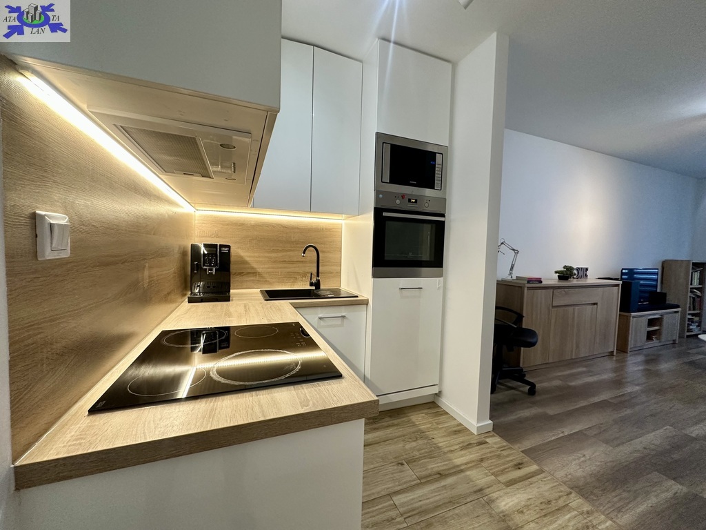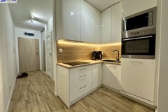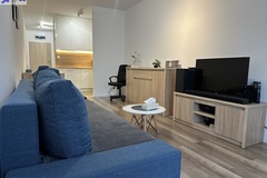 -pokój dzienny z aneksem kuchennym i wyjściem na balkon,