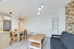 - przestronny salon z aneksem kuchennym wyposażonym w płytę, piekarnik, zmywarkę, lodówkę, zlew, okap i meble na wymiar, z którego mamy bezpośrednie wyjście na balkon. W salonie znajduje się rozkładana kanapa, komoda, telewizor oraz stół + 4 krzesła