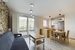 Salon wyposażony jest w sofę ze stolikiem kawowym, ściankę telewizyjną, rozkładany stół z czterema krzesłami. Na oknach znajdują się plisy.