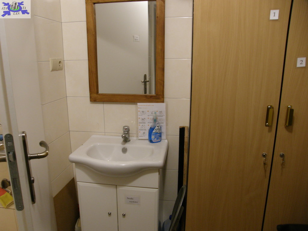 Pomieszczenia kawiarni 65 m2 w tym klimatyzowana sala konsumpcyjna 34 m2, WC damskie i WC męskie dla klientów 6,7 m2, zmywalnia 2,2 m2, kuchnia 10 m2, obieralnia 2,9 m2, pomieszczenie socjalne 2 m2, WC dla pracowników 1 m2, kotłownia 5 m2 drzwi wejściowe do sklepu i kawiarni aluminiowe z szybą antywłamaniową,