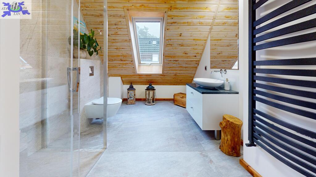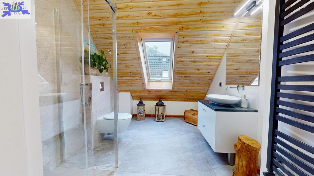- łazienka z oknem, wykończona z włoskich materiałów (gres Atlas Concorde)
