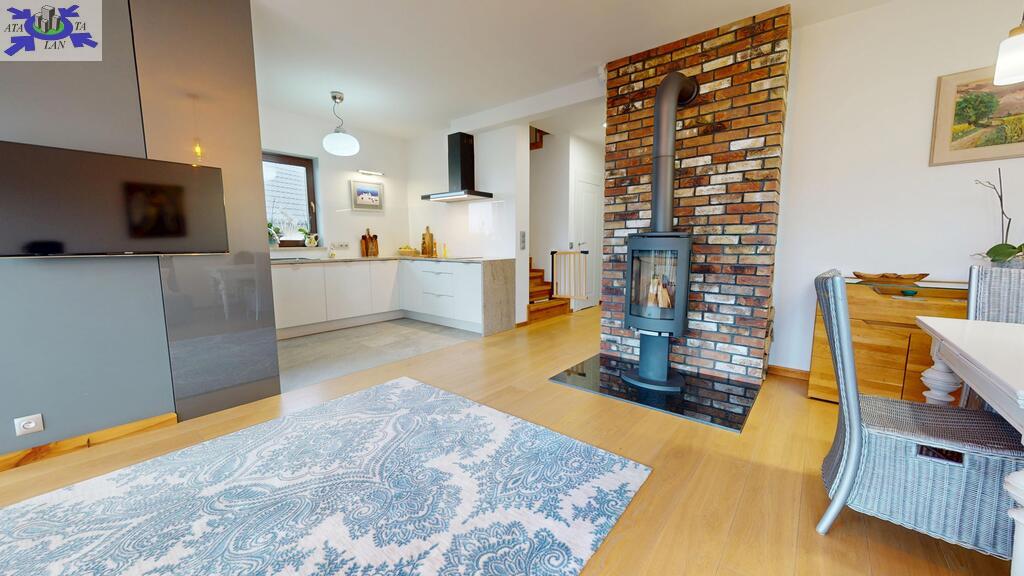 - przestronny salon z kominkiem typu koza firmy Jotul oraz z wyjściem na taras