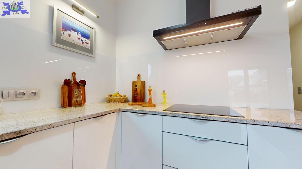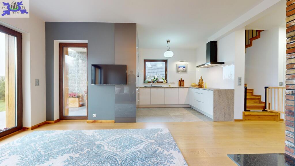 - otwarta kuchnia w pełni umeblowana, wykonana z materiałów firmy Eger, blaty z kamienia naturalnego - granit,