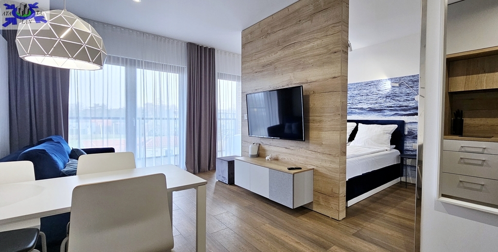 Sprzedam apartament o pow. użytkowej 31,39m2. Apartament usytuowany jest w nowoczesnym, komfortowym apartamentowcu z 2019r z windą zjeżdżającą do poziomu garażu w pierwszej linii zabudowy od morza). Kompleks budynków jest dostępny jedynie dla mieszkańców, ogrodzony i stale monitorowany. Do dyspozycji mieszkańców jest plac zabaw dla dzieci, tereny zielone. Apartament składa się z eleganckiego salonu z aneksem kuchennym (24,19m2), \z wydzieloną częścią sypialną , oraz łazienki /4,8m2) i przedpokoju (3,41m2). Apartament znajduje się na 1 piętrze budynku, posiada narożny taras o powierzchni 7,80m2 z widokiem na morze oraz miejsce postojowe w hali garażowej w podziemiach budynku w cenie 50000 zl.