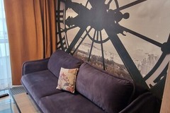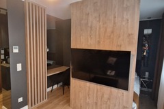 Nowocześnie urządzone, starannie wykończone mieszkanie z aneksem kuchennym, wydzielonym miejscem sypialnianym.