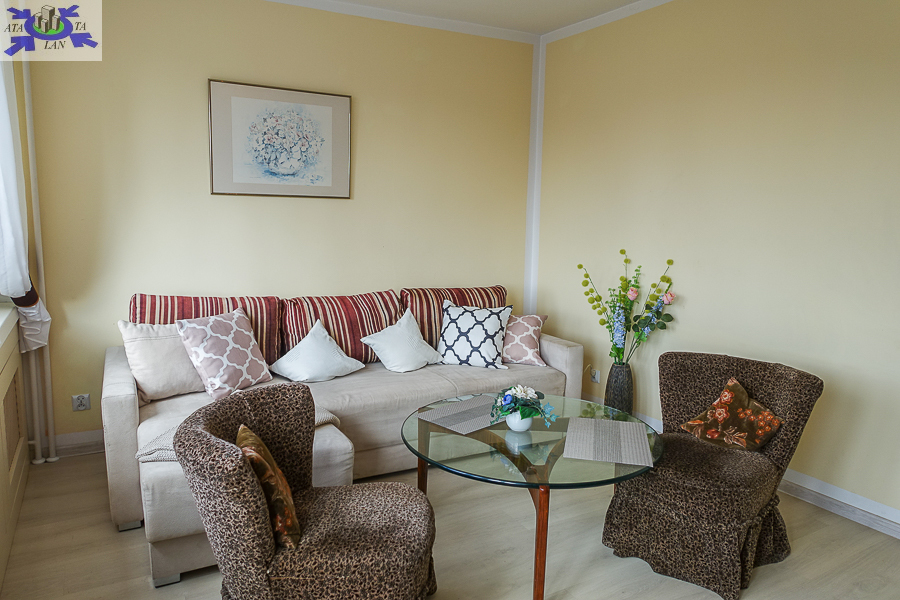 OPIS MIESZKANI Pokoje o powierzchni 16 m2 i 9 m2, w każdej kanapa rozkładana dwuosobowa, w jednym szafa dwudrzwiowa w drugim komoda, stolik. W kuchni meble i wyposażenie AGD kuchenka gazowa z piekarnikiem, lodówka, zmywarka. W łazience kabina prysznicowa, umywalka, pralka, WC razem. Glazura i terakota. W przedpokoju szafa dwudrzwiowa.