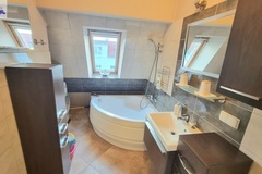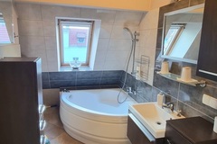Pokój Kąpielowy Salon łazienkowy wykończony w szlachetnej glazurze, wyposażony w luksusową wannę narożną - prywatne SPA w domowym zaciszu.