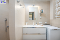 W apartamencie zastosowano ogrzewanie podłogowe. Dodatkową funkcję grzewczą i chłodzącą pełni klimatyzacja.