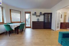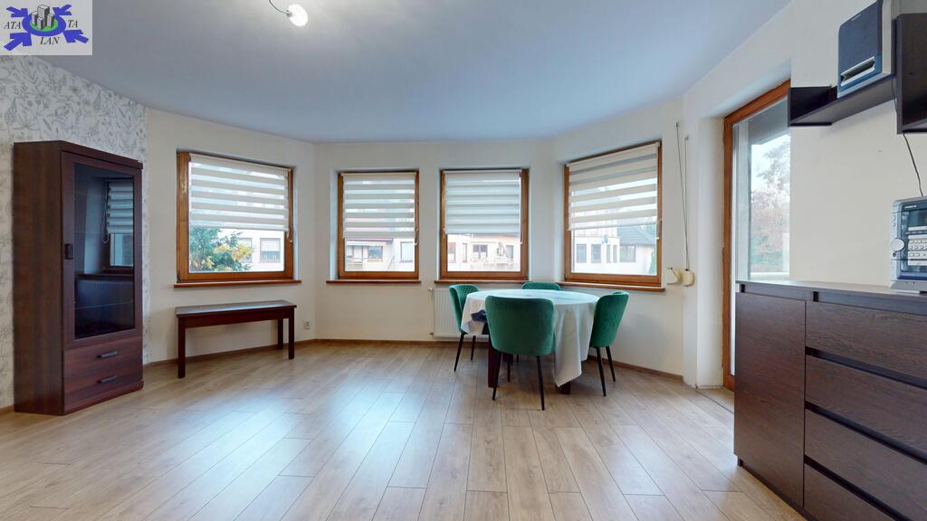 Przestronny salon z wyjściem na duży, nasłoneczniony balkon