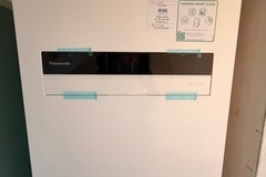 Ogrzewanie Wydajna Pompa Ciepła Panasonic (7kW) oraz ogrzewanie podłogowe na całej powierzchni (parter i piętro).