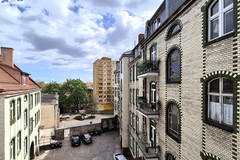 * pokój o powierzchni 20mkw. (z fototapetą) nie jest ujęty w Księdze Wieczystej która wynosi 59,43mkw. Właścicielka mieszkania otrzymała go od Spółdzielni Mieszkaniowej Kielnia w zamian za zgodę na zasłonięcie okna szczytowego i postawienie budynku przylegającego bezpośrednio do kamienicy. Jego użytkowanie jest bezpłatne i bezterminowe.