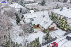 Dom o powierzchni użytkowej ok. 215 m2, w sąsiedztwie lasu i bliskiej odległości od jeziora Miedwie, położony na działce o powierzchni 1209 m2.