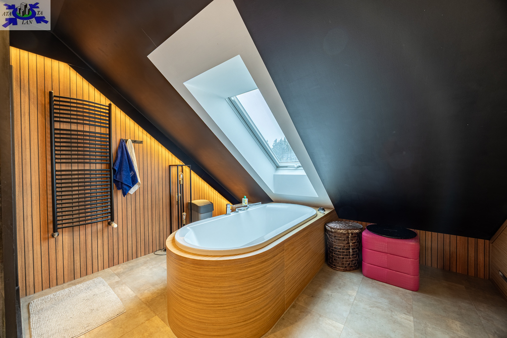- łazienka z wanną oraz kabiną prysznicową