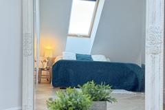 Przytulna sypialnia (8,35 m2) zapewniająca komfortowy wypoczynek Antresola (7,05 m2) - wpisana w KW jako trzeci pokój - idealna na gabinet, pokój dziecka lub strefę hobby WC z umywalką (2,21 m2)