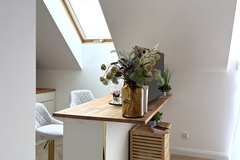 Przestronny salon z aneksem kuchennym (29,33 m2) - pełen naturalnego światła, doskonały do wspólnego spędzania czasu Wyjście na urokliwy taras - idealny na poranną kawę lub relaks po pracy Nowoczesna łazienka z prysznicem (5,03 m2) Otwarta komunikacja ze schodami, która potęguje wrażenie przestrzeni