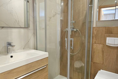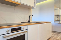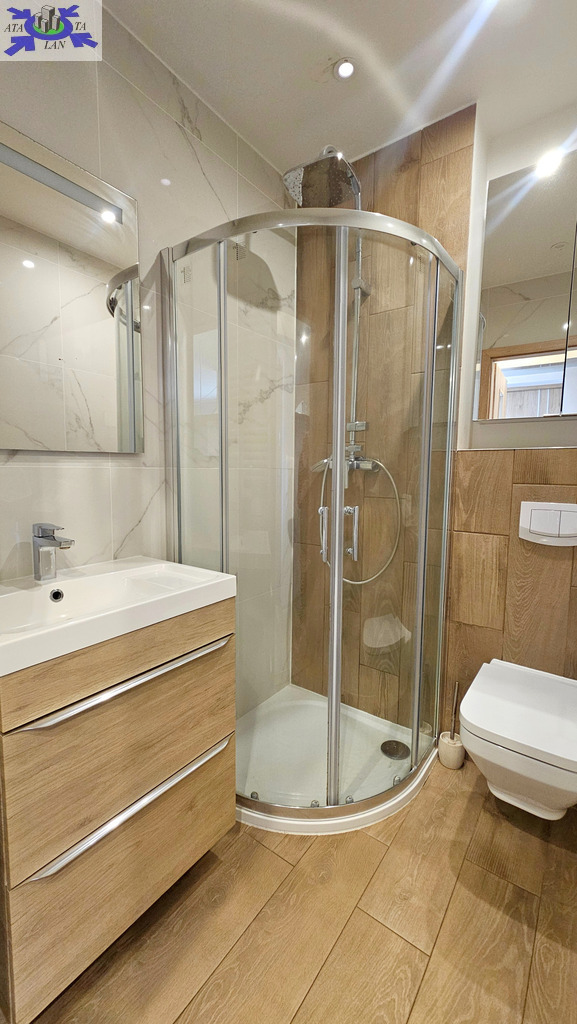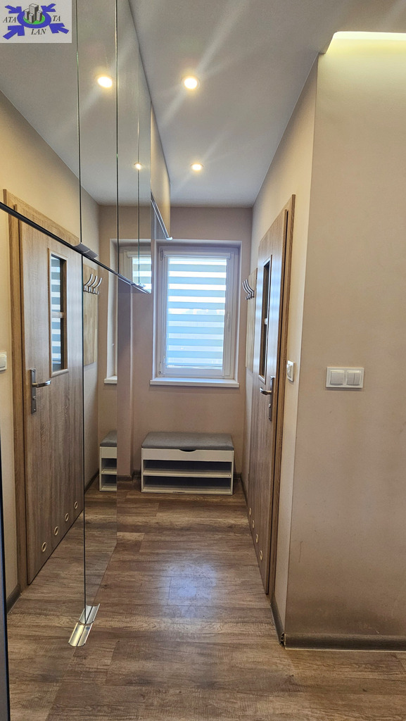 Salon jest miejscem, w którym można naprawdę odpocząć. Sprawdzi się zarówno na spokojne wieczory, jak i spotkania z bliskimi. Obok znajduje się sypialnia z dużą szafą w zabudowie, która porządkuje przestrzeń i pozwala zachować wnętrze w harmonii. Kuchnia jest w pełni umeblowana i wyposażona w sprzęt AGD - gotowa do użytku od pierwszego dnia. Całość uzupełnia łazienka z prysznicem oraz praktyczny korytarz