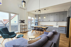W strefie dziennej zastosowano ogrzewanie podłogowe, które znacząco podnosi komfort użytkowania. Dodatkowo w salonie znajduje się klimatyzacja, zapewniająca komfort termiczny w cieplejsze dni. Na podłodze położono panele winylowe - wyjątkowo trwałe i odporne na uszkodzenia, co jest szczególnie istotne przy małych dzieciach.