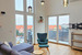 Salon zachwyca podwójną wysokością (5,5m), która w połączeniu z wysokimi, dwukondygnacyjnymi oknami daje niezwykłe poczucie przestrzeni i światła. Bez problemu mieści się tu duża sofa, fotel idealny do czytania książki oraz strefa wypoczynkowa dla całej rodziny.