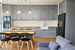 Sercem mieszkania jest salon połączony z otwartą kuchnią zaprojektowaną z myślą o wspólnym spędzaniu czasu.