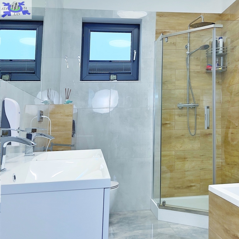 Komfort życia podnosi dwufunkcyjna klimatyzacja, a o Twoje bezpieczeństwo dba monitoring z funkcją noktowizyjną oraz elektryczne bramy na pilota. Solidny dach wielospadowy pokryty dachówką ceramiczną i doskonała izolacja to gwarancja ciepła i ciszy w Twoim domu. Wnętrza wykończono z dbałością o każdy detal, używając wysokiej jakości materiałów, takich jak gres i eleganckie panele.