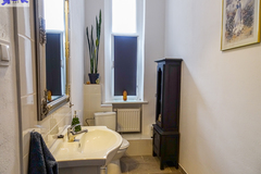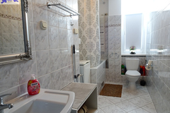 For rent for 3 to 6 people a very atmospheric apartment on the third floor of a well-kept tenement house in the Center, near al. Wojska Polskiego. Total area 118.34 m2. 4 rooms, kitchen, bathroom, toilet. Height of the apartment 3.3 m. Cost 3800 PLN + rent to the manager 1000 PLN (without water and garbage collection 660 PLN) + electricity, gas. Gas heating, hot water from a gas furnace. Spacious rooms, beautiful stucco on the ceilings, large kitchen. Furnished rooms, but can be without furniture. Room 24, 6 m2 with access to the balcony, room 24.6 m2, room 24.75 m2 from it passage to room 14 m2. Spacious hall. In the furnished kitchen with a window two smaller refrigerators and the other with a freezer, gas stove. In the bathroom with a window bathtub, sink, washing machine, space for a second washing machine. Additionally, a 6 m2 toilet with a window with a sink. Wooden floors covered with carpet. Beautiful door joinery. Deposit PLN 6,000. Electricity in copper, available internet and TV from the UPC network (tenants sign an individual contract for the supply of internet or cable TV). Apartment intended for a family (occasional lease) or a contract for a company for management staff.