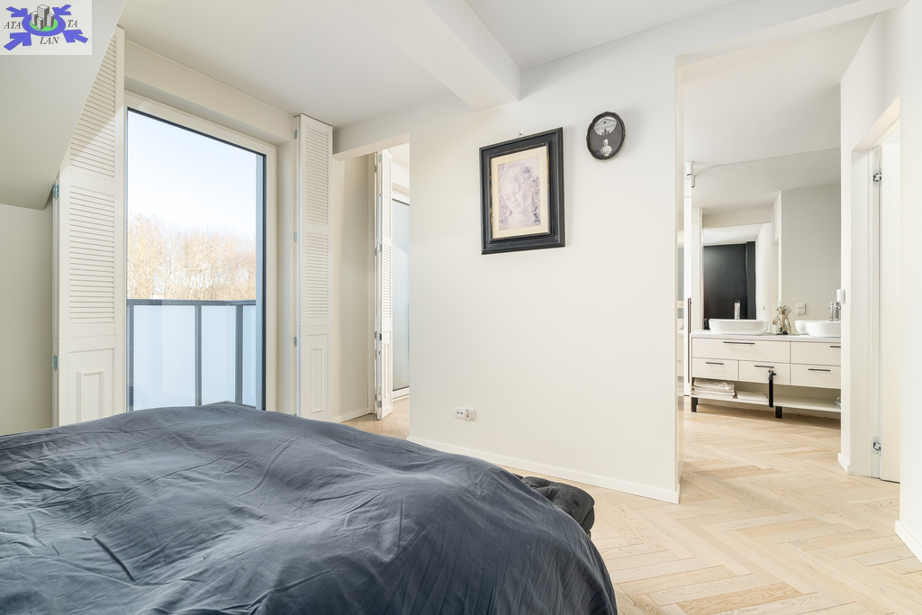 Master Bedroom Komfortowa sypialnia połączona bezpośrednio z prywatną łazienką. Dodatkowe 2 ustawne sypialnie (łącznie 3 pokoje na górze). Salon kąpielowy (wanna + prysznic). Balkony dostępne z obu stron domu.