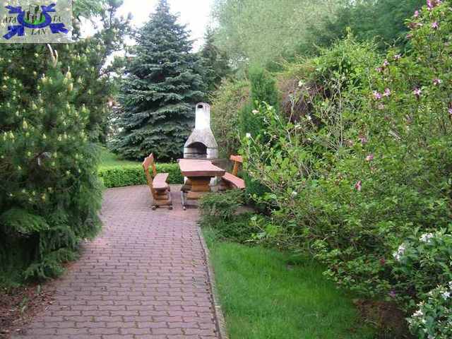 Dom posadowiony na dużej 2800m2 działce obsadzonej 3 tysiącami drzew i krzewów w tym 70 letnie cedry i świerki. Przy domu podgrzewany basen o wymiarach 6x 10 m i 1,5 m głebokości. W dalszej części ogrodu miejsce na grill,na podjeździe zadaszone 2 miejsca parkingowe.