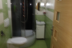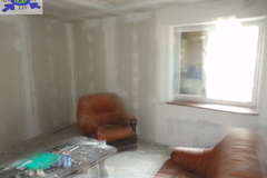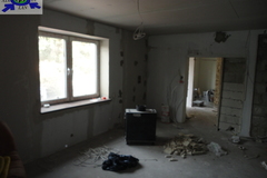 Wykończenie pomieszczeń mieszkalnych na I i II piętrze - na podłogach panele, ściany gładzone i malowane (do odświeżenia), okna pcv z okleiną drewnianą, ogrzewanie z kominka z płaszczem wodnym, kuchnie w zabudowie wyposażone, łazienki urządzone w glazurze i terakocie z białą armaturą. Lokal mieszkalny na parterze wymaga wykończenia, aktualnie jest w standardzie"developerskim". Do dokończenia jest wyłożenie podłóg, malowanie ścian, wykończenie kuchni i łazienki.