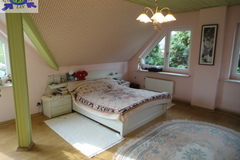 Piętro na którym znajdują się cztery pokoje- sypialnie 12,11,21,14 mkw, łazienka 7 mkw., pomieszczenie socjalne- schowek, hol z którego prowadza schody na poddasze. Na podłogach są panele. Ściany gładzone malowane. Piwnica w którym znajdują się cztery pomieszczenia i garaż dwu stanowiskowy. W 2009 r. był przeprowadzony w domu remont ale tak naprawdę nie był konieczny ponieważ dom był w bardzo dobrym stanie.