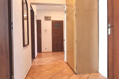 Podłogi w pokojach wyłożone są panelami, ściany gładkie malowane. Kuchnia wyposażona w meble z drewnianymi frontami i wykończona glazurą i terakotą. Łazienka w jasnych kaflach z wanną i miejscem na pralkę, wc osobno. Przestronny korytarz wykończony terakotą. Jedna z sypialni posiada obszerną zabudowę szafy, dodatkowo dwie szafy wolnostojące. Okna PCV, drzwi wejściowe antywłamaniowe. Wielkim atutem mieszkania jest duży balkon położony od zachodu oraz środkowe położenie lokalu. Coroczne zwroty za ogrzewanie w wysokości około 1500 złotych.