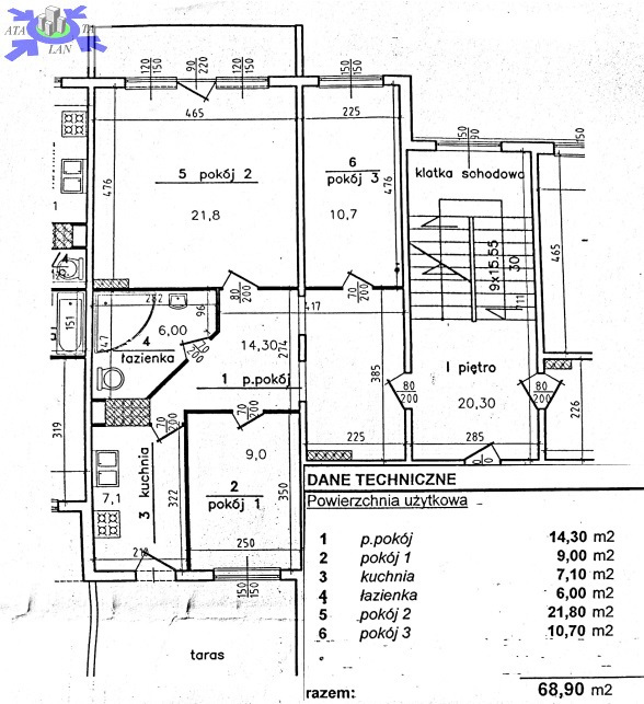 - kuchnia (ok. 7m2) z wyjściem na taras,