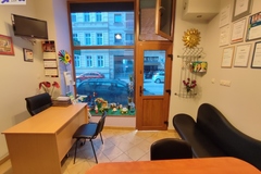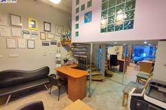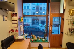 Lokal posiada własne wejście bezpośrednio z ulicy oraz dużą - ponad siedmiometrową witrynę. Lokal w ciągu ostatnich lat przeszedł generalny remont (ostatnie prace remontowe rok temu) i oferowany jest do sprzedaży w bardzo dobrym standardzie. W głównym pomieszczeniu ulokowane są dwa stanowiska biurowe (biurka plus fotele i krzesła) oraz mini poczekalnia gdzie znajduje się sofa. Tylna część lokalu to zaplecze socjalne, w którym znajdują się osobna toaleta z umywalką oraz aneks kuchenny (m.in. zlew, mikrofala i czajnik elektryczny) zasłonięty przesuwanymi szklanymi drzwiami. Dodatkowo za jednym z biurek usytuowane są kręcone schody, którymi wchodzimy na antresolę o powierzchni około 7m2 (nie wliczona w powierzchnię użytkową lokalu). Antresola jest częściowo przeszklona ozdobnymi luxferami.