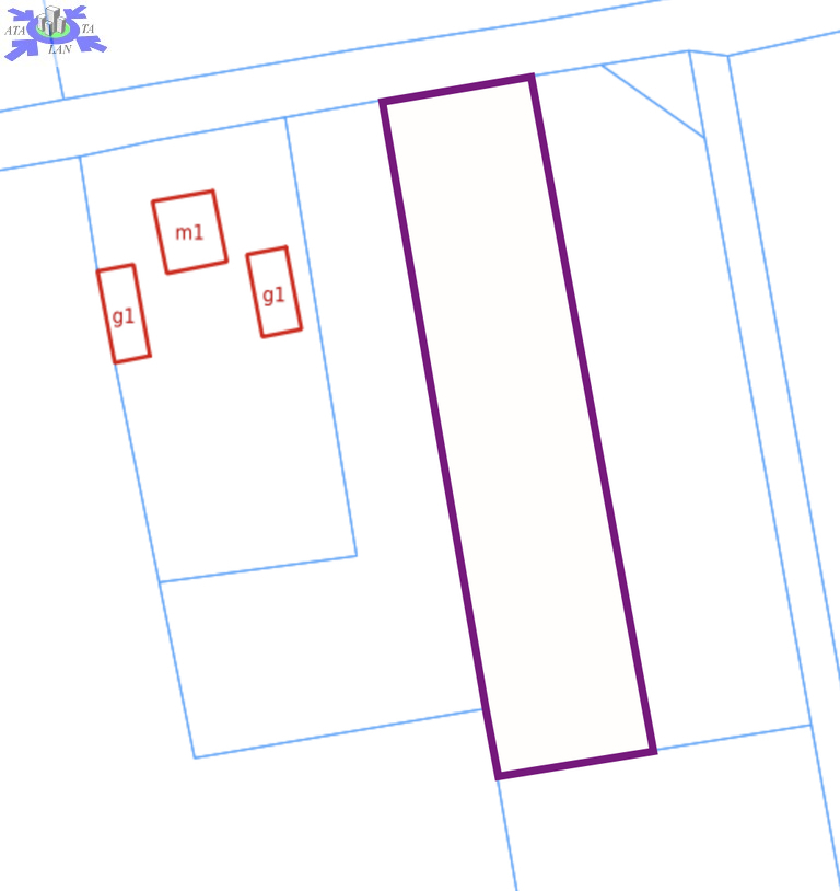 Nieruchomość w kształcie równego prostokąta, położona przy głównej ulicy.