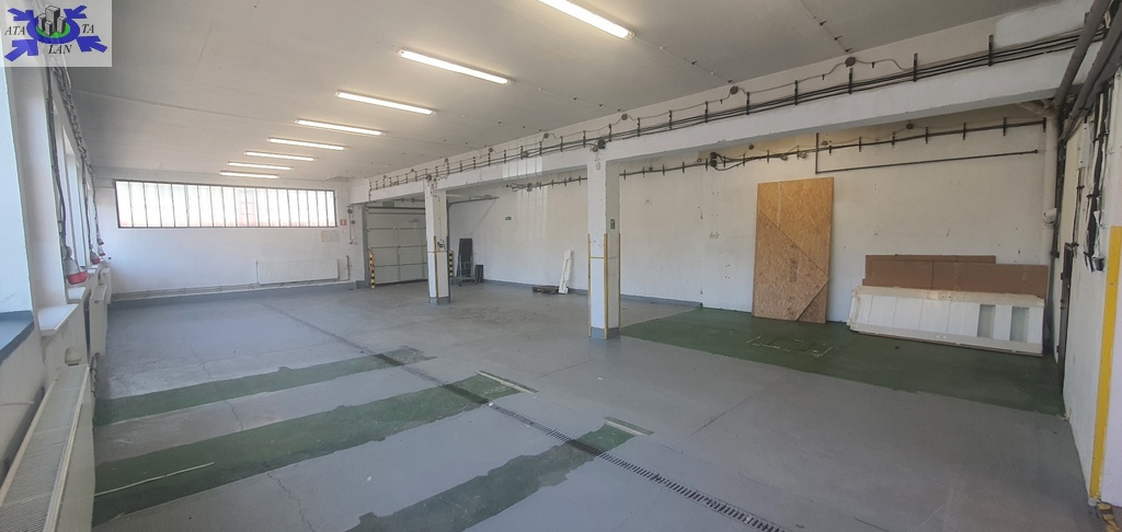 Na parterze znajdują się hala (135 m2), biuro wraz z recepcją (11 m2),kotłownia (16 m2), przedsionek (4 m2), korytarz ( 5,5 m2), WC (3 m2),klatka schodowa (3,5 m2), pomieszczenie z przyłączami elektrycznymi (3 m2). Wysokość hali 3,3 m, do wnętrza prowadzi brama segmentowa KRISPOL o wymiarach 280X230 cm, z drzwiami, podnoszona do sufitu (brak progu umożliwia wjazd do hali wózka widłowego lub samochodu.