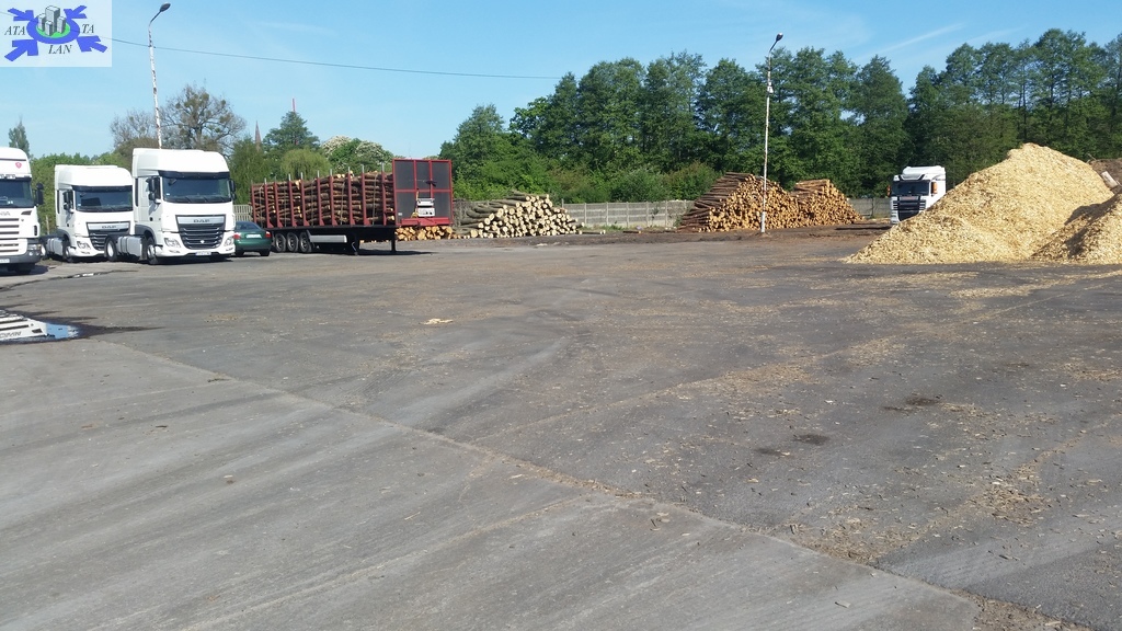 Częściowo utwardzony, ogrodzony, oświetlony plac składowy.