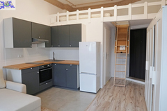 Kawalerka 1 posiada duży jasny pokój z wyjściem na balkon, aneks kuchenny i łazienkę. Dużym atutem jest spora antresola gdzie najemca może spać. Łazienka w nowoczesnej kolorystyce. W pełni umeblowane i wyposażone.