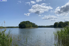 W okolicy znajdują się zabudowania oraz piękne jezioro i lasy.