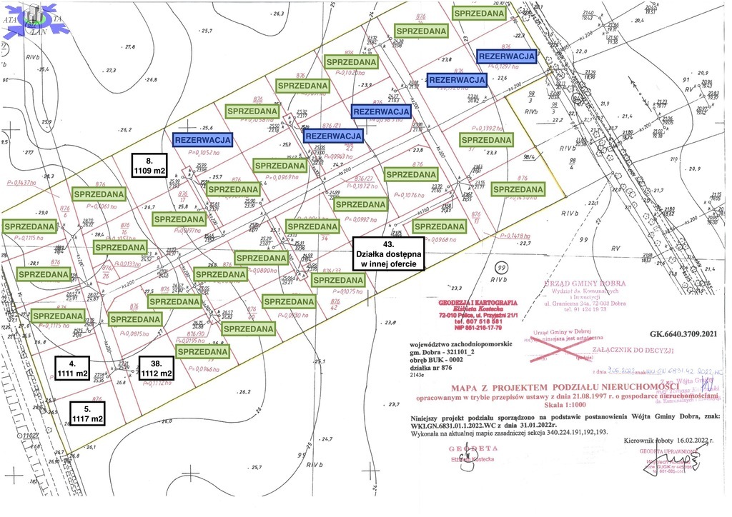 Działki oznaczone na mapie "Dostępne w innej ofercie" dostępne są do sprzedaży w innej ofercie naszego biura. Zapytaj o szczegóły.